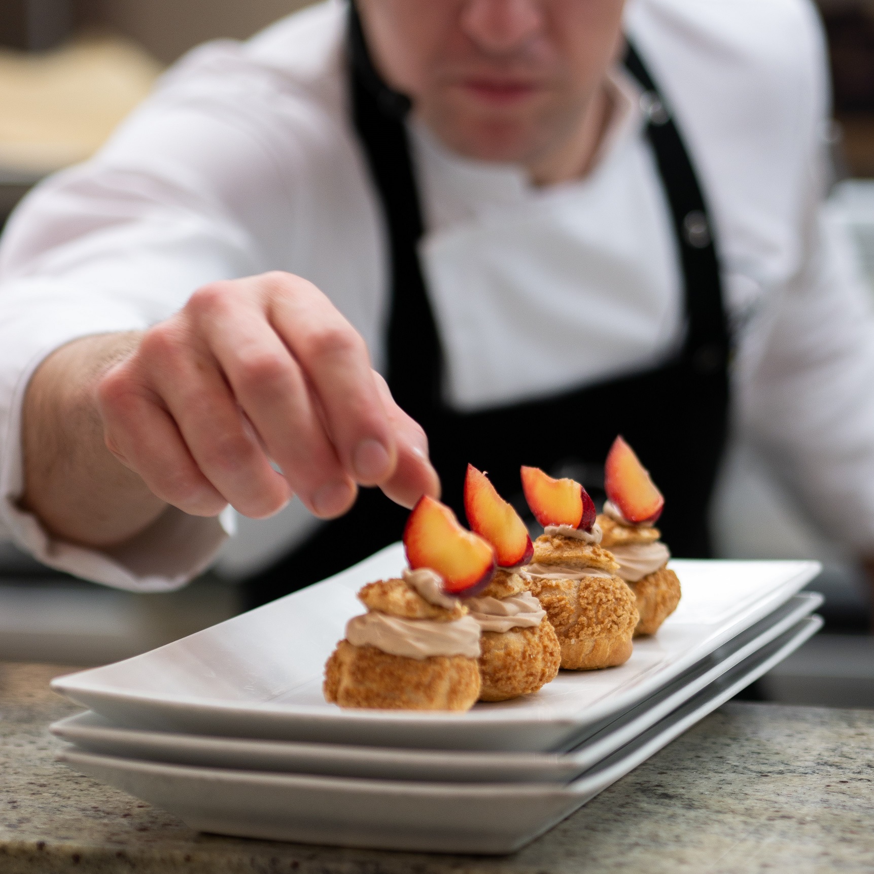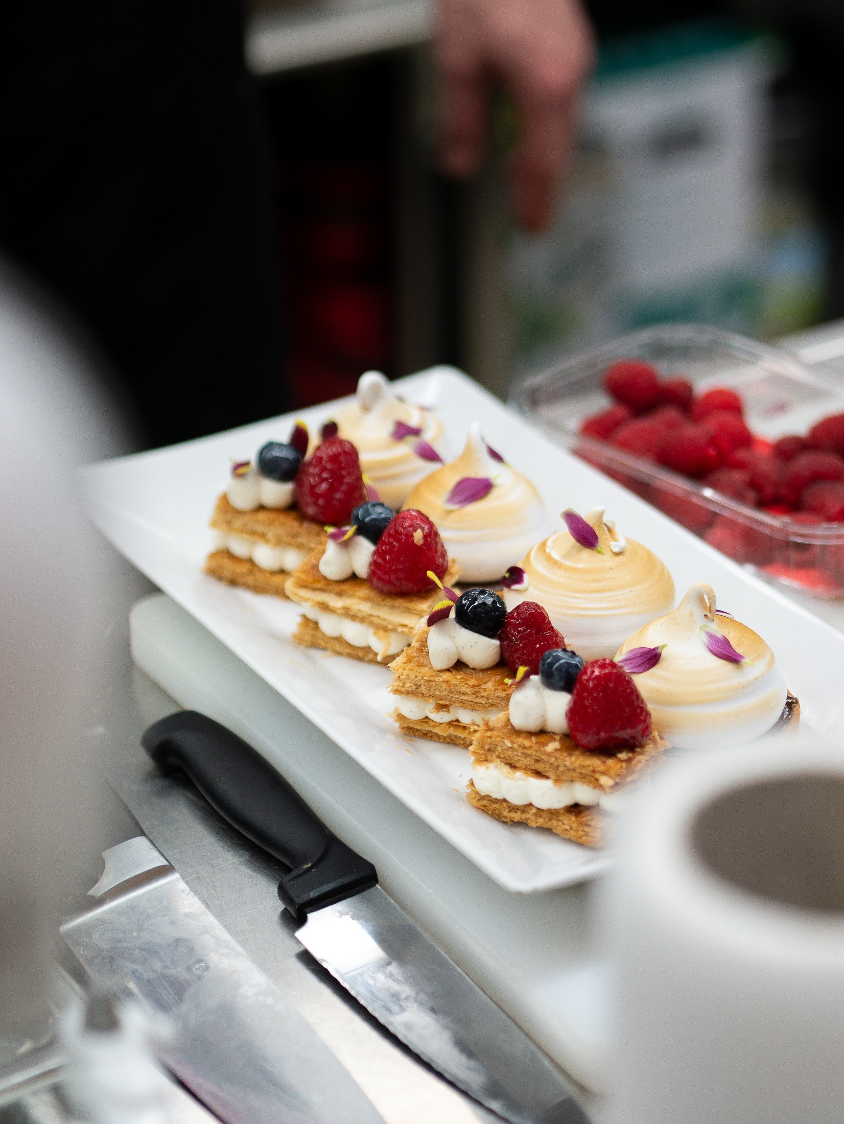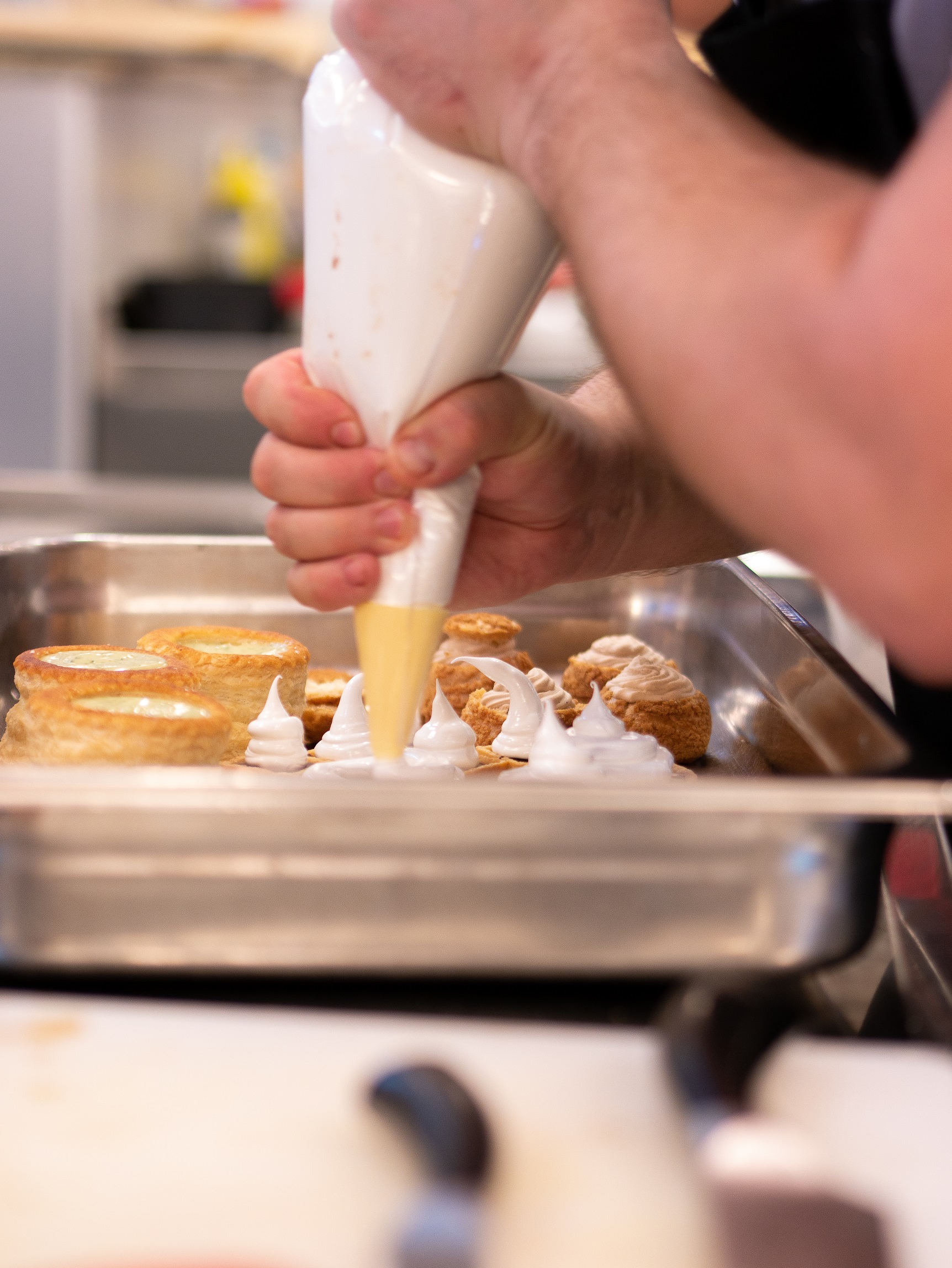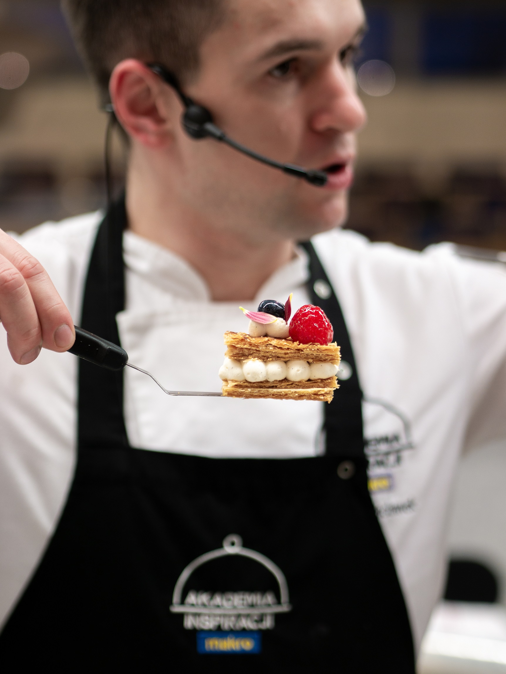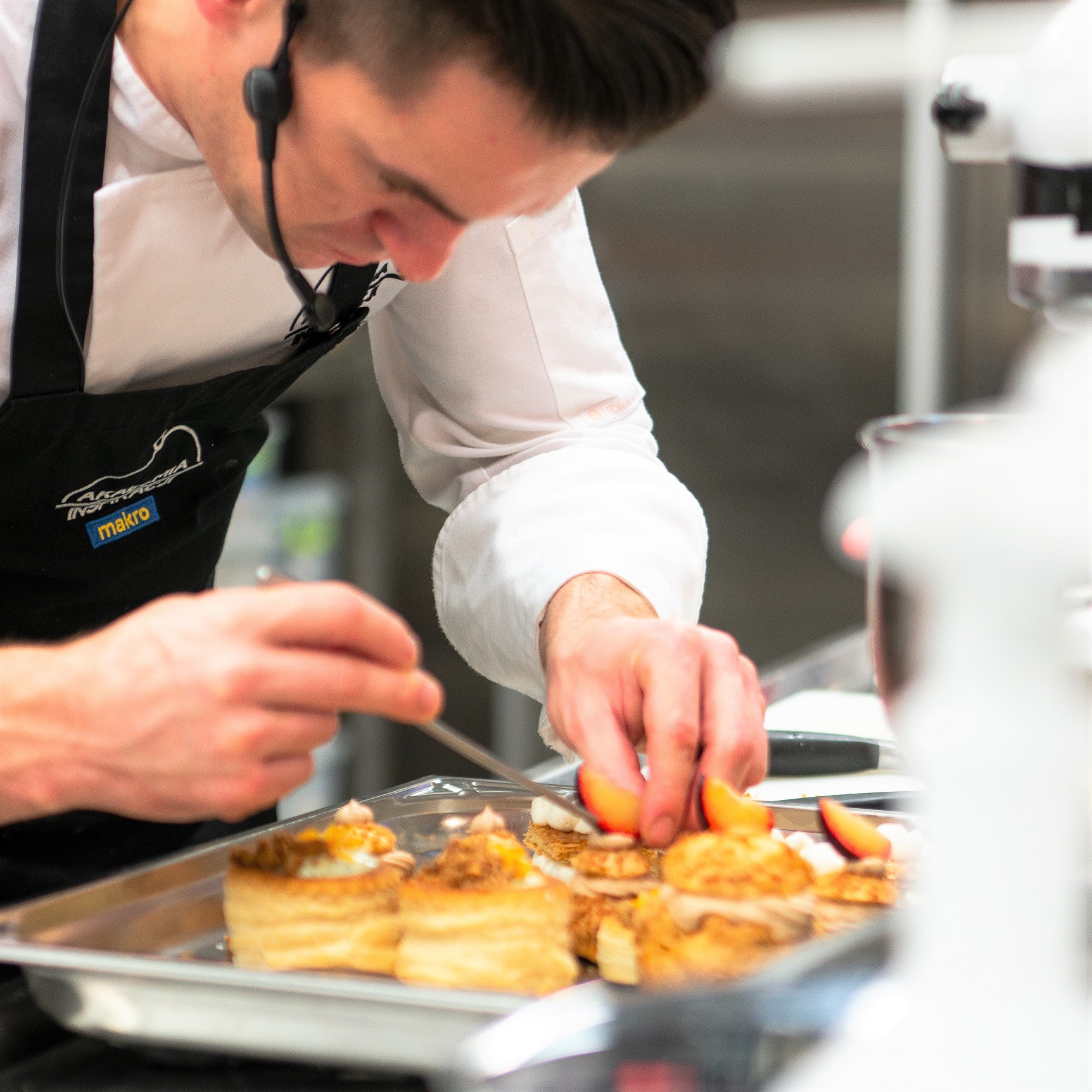 Michał Węcławek – nasz ekspert od warsztatów pastry prezentuje garść migawek ze swojego ostatniego spotkania z uczestnikami warsztatu Menu okolicznościowe: Desery. Jak zawsze praktyczne i merytoryczne wskazówki z zakresu organizacji pracy sekcji cukierniczej tym razem uzupełnione zostały o porady dla kreatywnego wykorzystania gotowych półproduktów poprzez łączenie ich z ciekawymi własnoręcznie przygotowanymi insertami. Wszystko to oczywiście w kontekście deserów i ich roli w menu serwowanym na przyjęciach okolicznościowych.